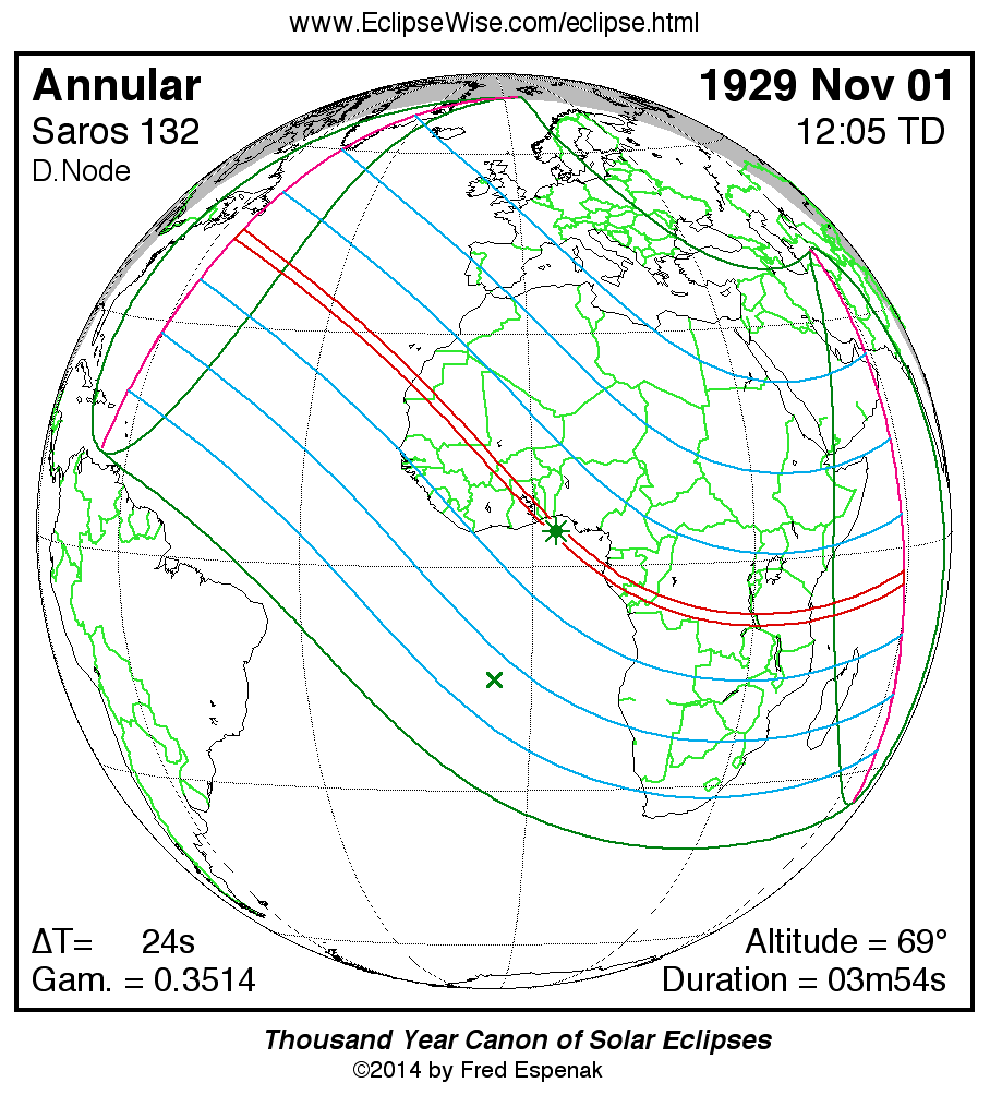 For more information on this series see Statistics for Solar Eclipses of Saros 132 .