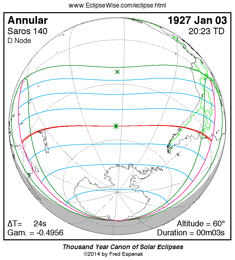 For more information on this series see Statistics for Solar Eclipses of Saros 140 .