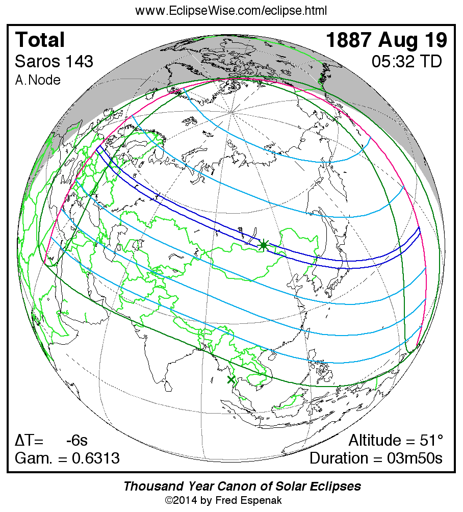 For more information on this series see Statistics for Solar Eclipses of Saros 143 .