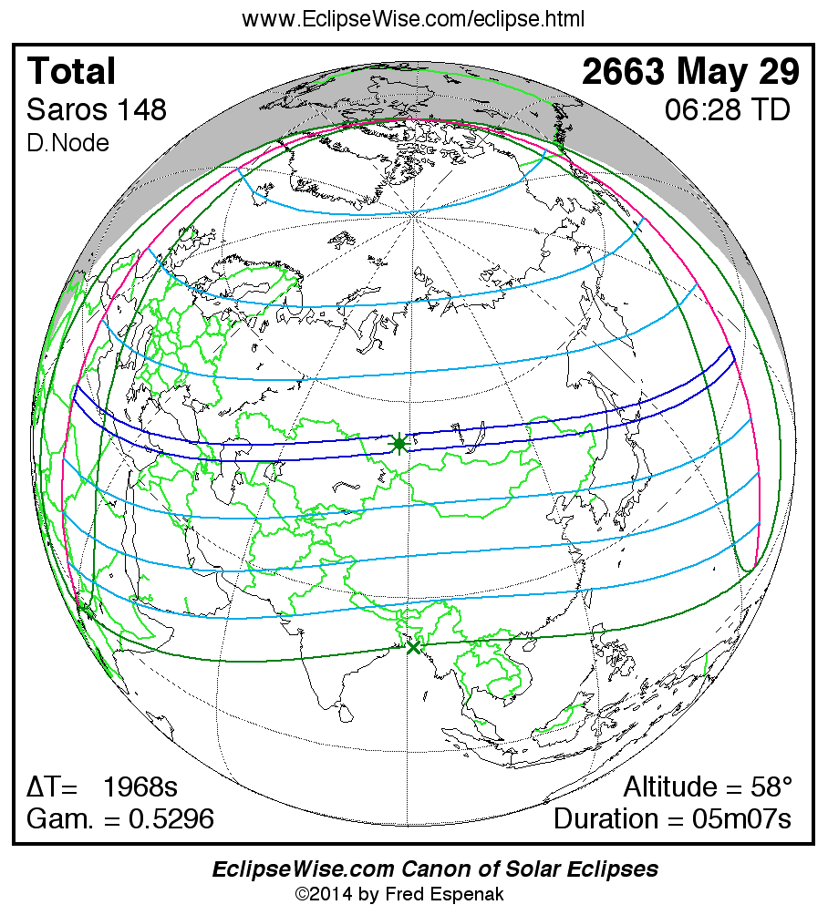 - Click on any global map to go directly to the EclipseWise Prime Page for more information, tables, diagrams and maps. Key to Solar Eclipse Maps explains the features in these maps.