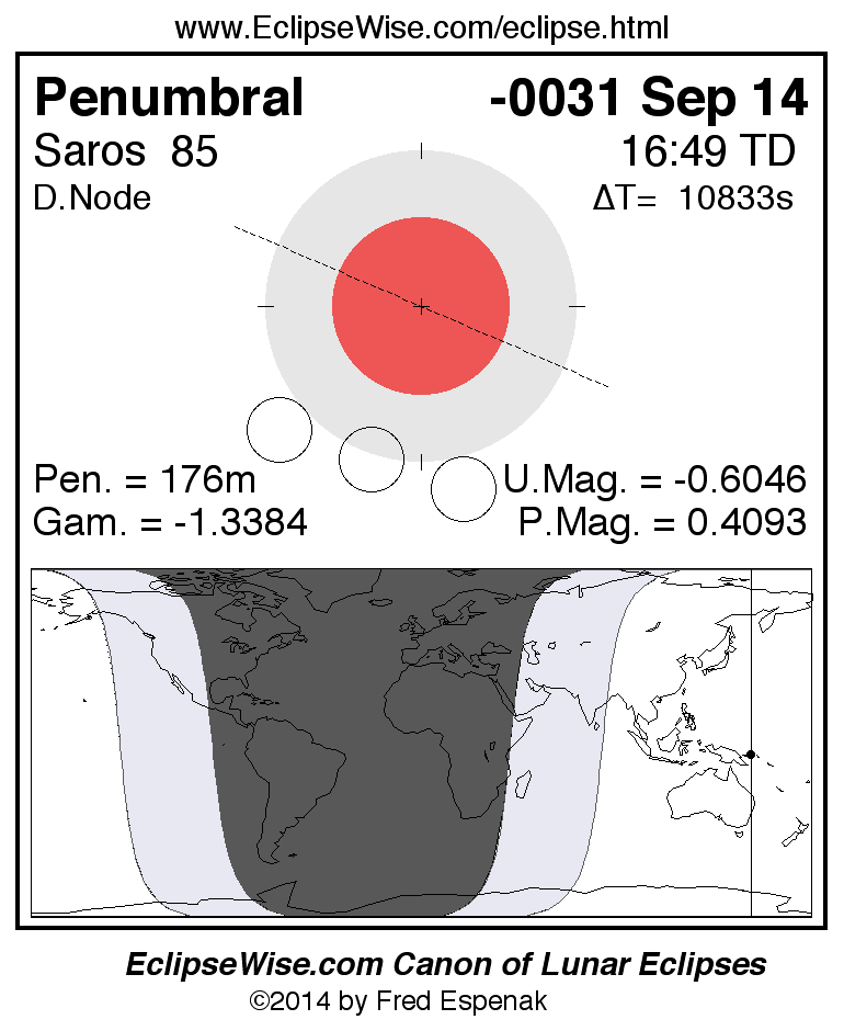 Penumbral Lunar Eclipse of -0031 Sep 14