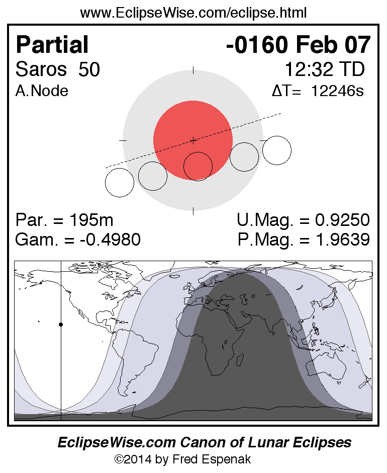 The instant of greatest eclipse takes place on -0160 Feb 07 at 12:32:27 TD (09:08:23 UT1).