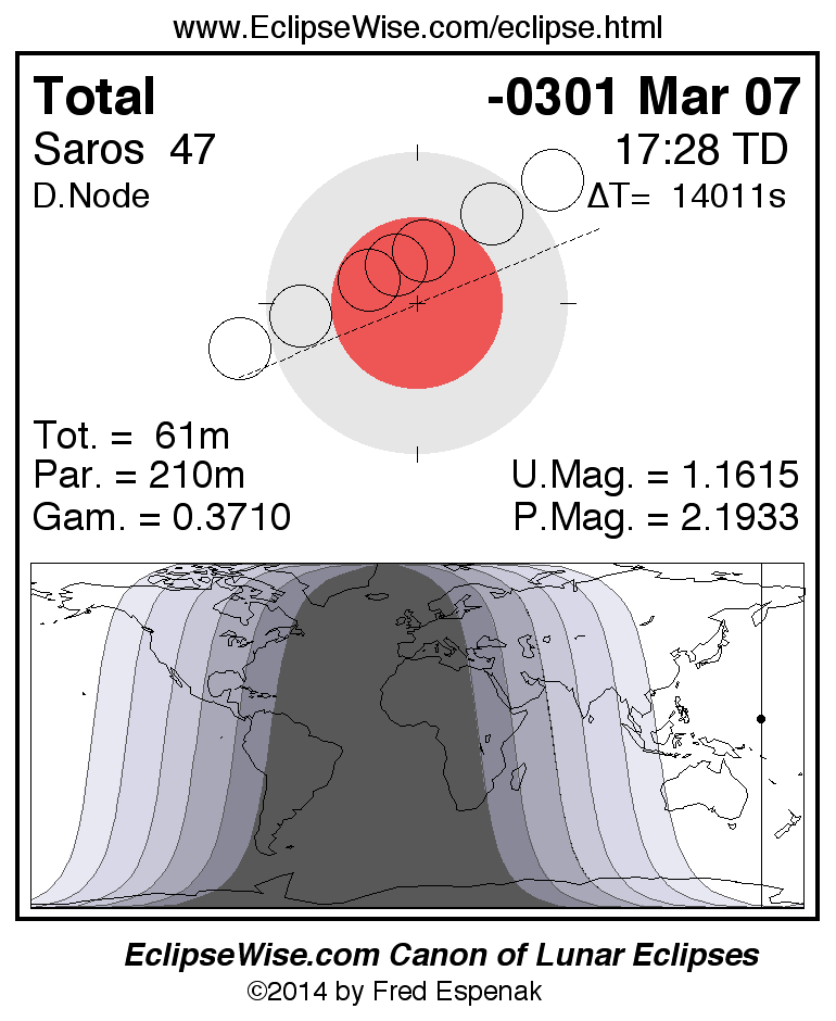 Total Lunar Eclipse of -0301 Mar 07 (0302 Mar 07 BCE)