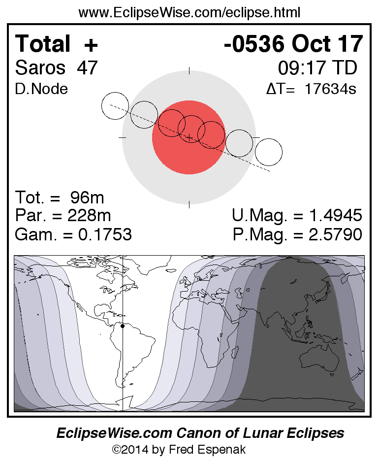 Total Lunar Eclipse of -0536 Oct 17 (0537 Oct 17 BCE)