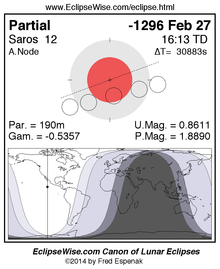 The instant of greatest eclipse takes place on -1296 Feb 27 at 16:12:52 TD (07:38:12 UT1).