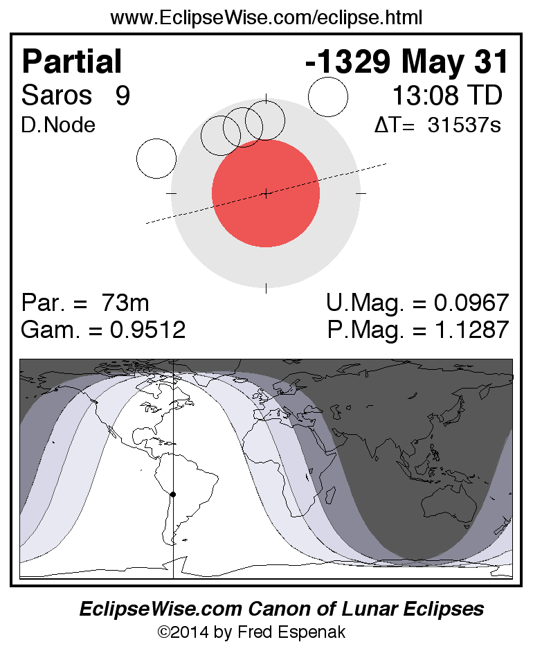 The partial lunar eclipse of -1329 May 31 is followed two weeks later by a total solar eclipse on -1329 Jun 14.