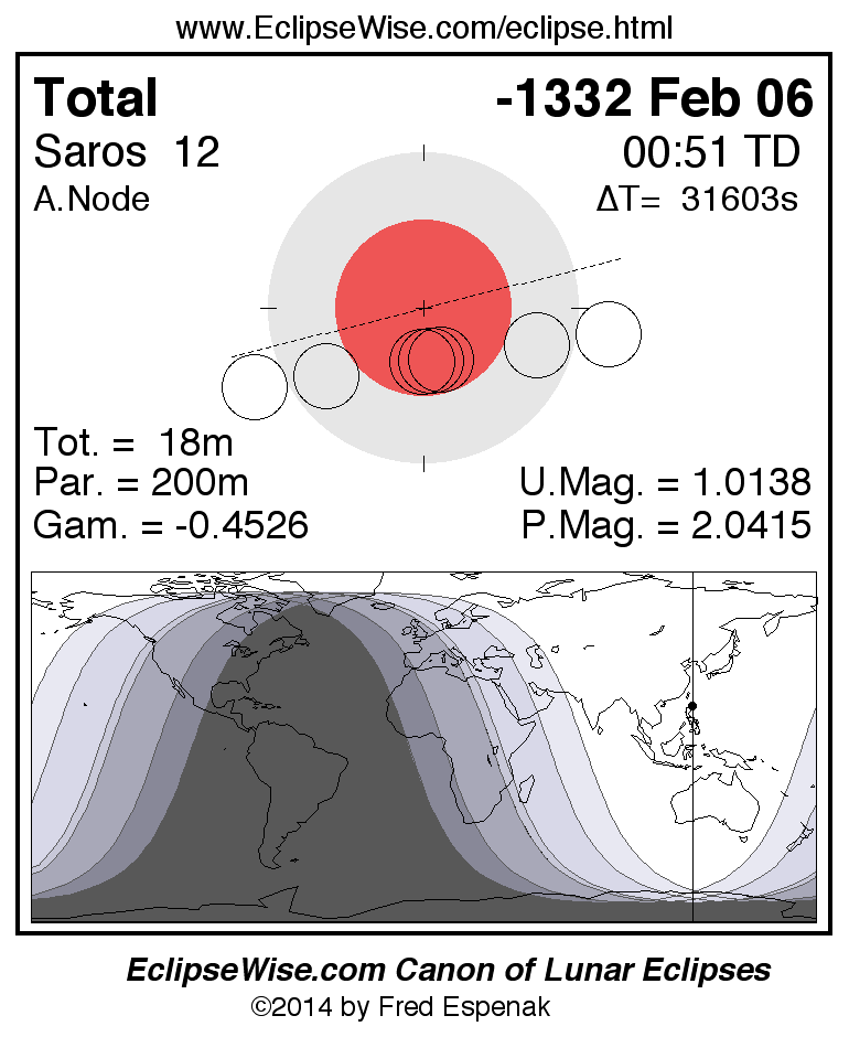 Total Lunar Eclipse of -1332 Feb 06 (1333 Feb 06 BCE)
