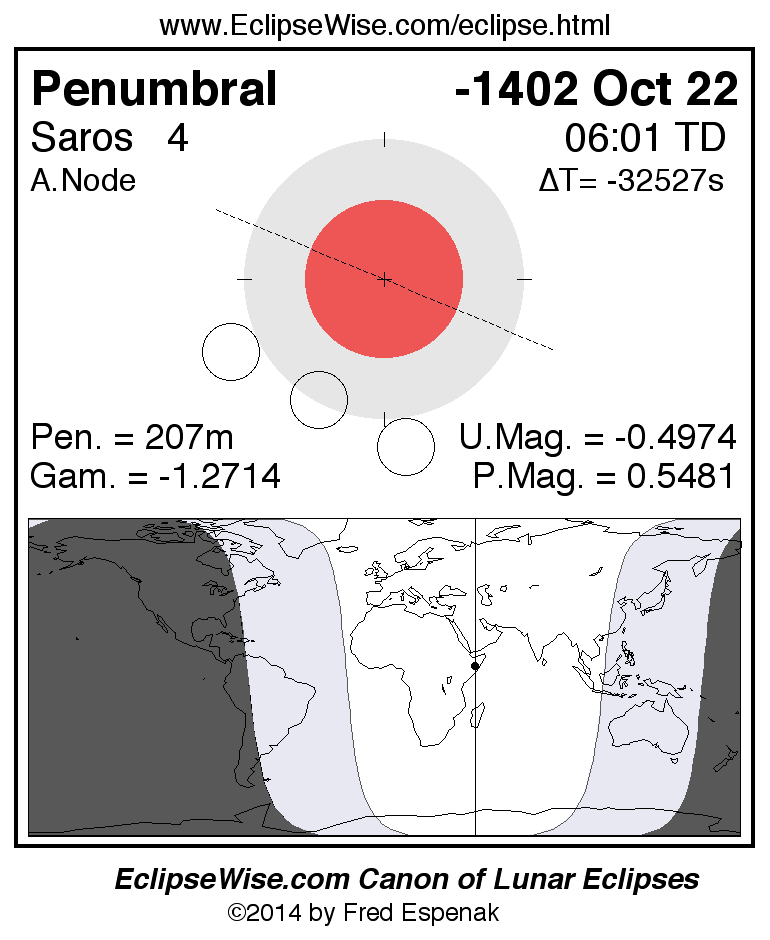 Penumbral Lunar Eclipse of -1402 Oct 22 (1403 Oct 22 BCE)