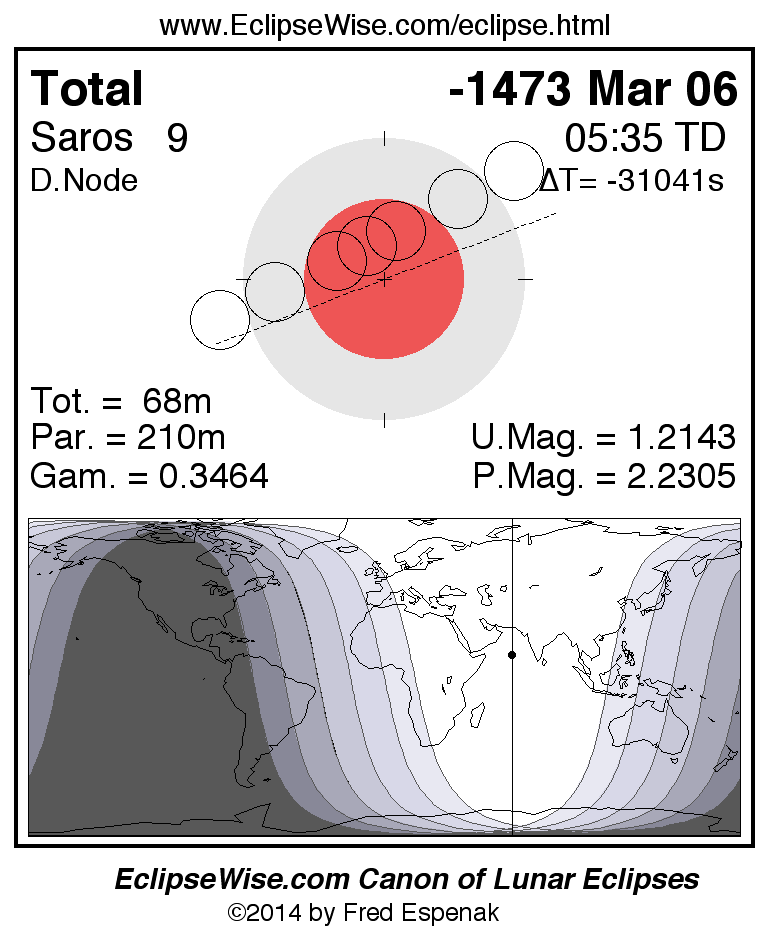 The instant of greatest eclipse takes place on -1473 Mar 06 at 05:34:50 TD (19:59:60 UT1).