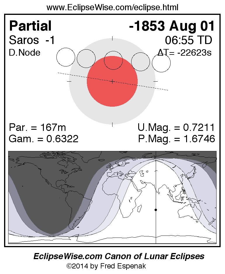 The instant of greatest eclipse takes place on -1853 Aug 01 at 06:54:49 TD (18:59:42 UT1).