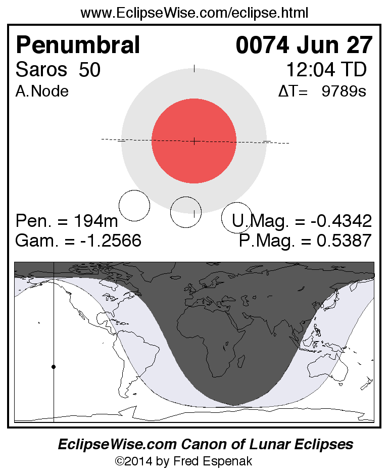 Penumbral Lunar Eclipse of 0074 Jun 27