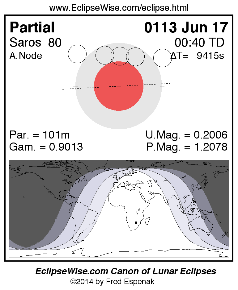 The partial lunar eclipse of 0113 Jun 17 is preceded two weeks earlier by a total solar eclipse on 0113 Jun 01.