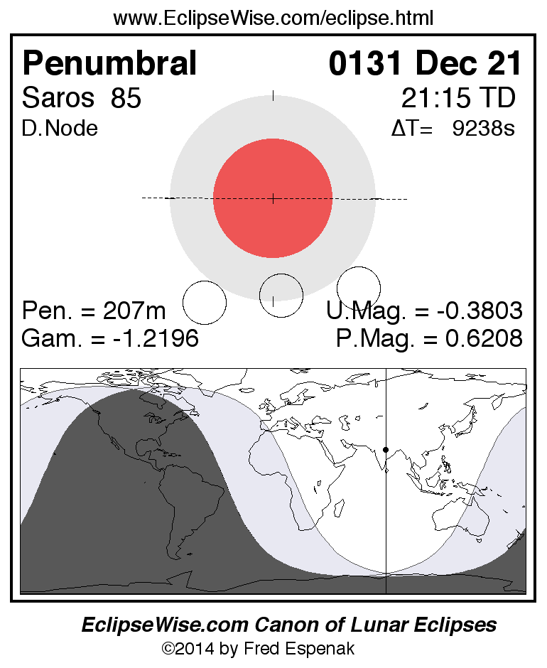 Penumbral Lunar Eclipse of 0131 Dec 21