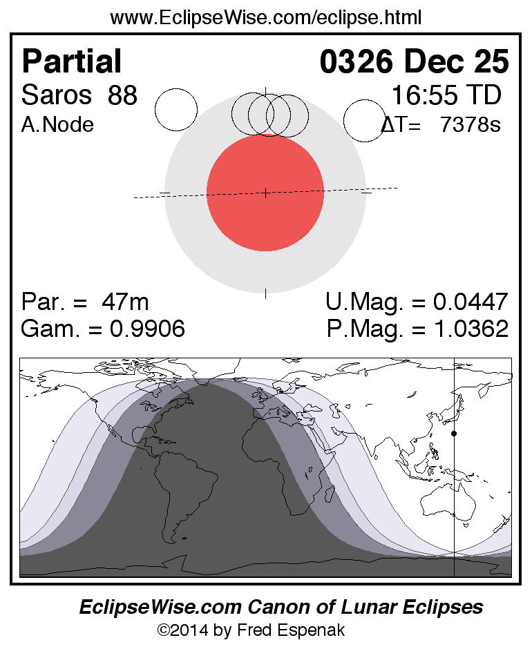 The partial lunar eclipse of 0326 Dec 25 is preceded two weeks earlier by a annular solar eclipse on 0326 Dec 11.