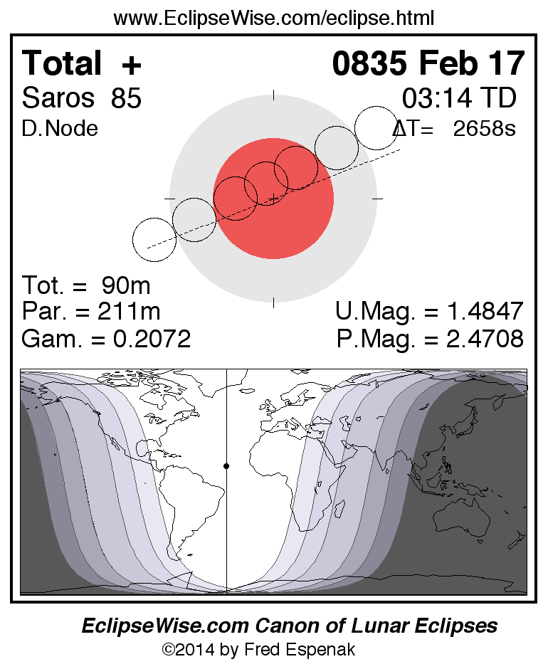 The total lunar eclipse of 0835 Feb 17 is followed two weeks later by a partial solar eclipse on 0835 Mar 03.