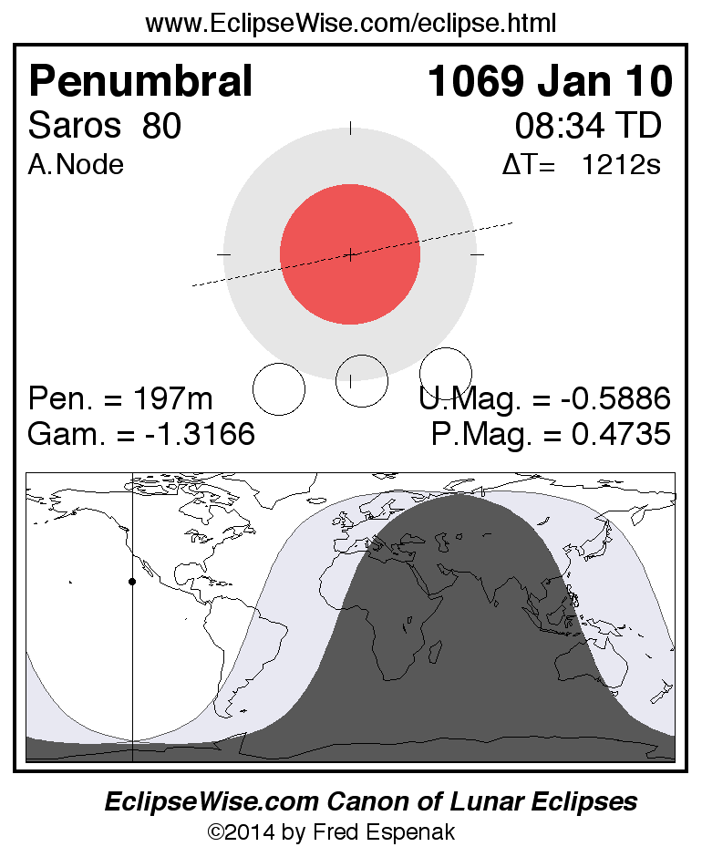 Penumbral Lunar Eclipse of 1069 Jan 10