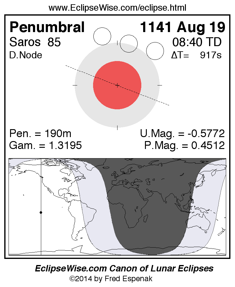 Penumbral Lunar Eclipse of 1141 Aug 19
