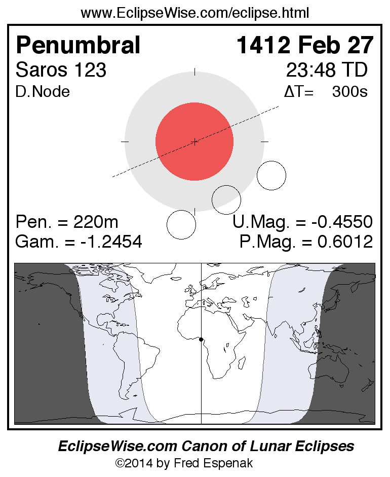 Penumbral Lunar Eclipse of 1412 Feb 27