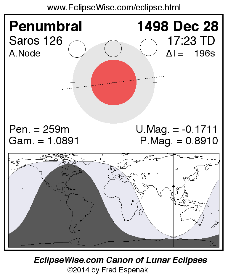 Penumbral Lunar Eclipse of 1498 Dec 28