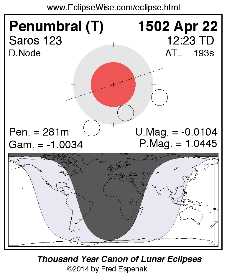 Penumbral Lunar Eclipse of 1502 Apr 22