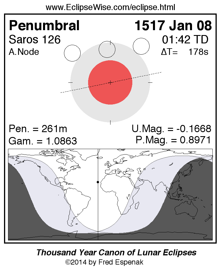 Penumbral Lunar Eclipse of 1517 Jan 08