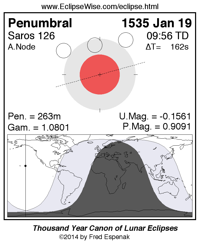 Penumbral Lunar Eclipse of 1535 Jan 19
