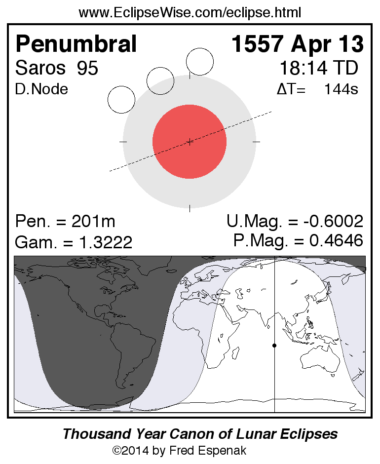 Penumbral Lunar Eclipse of 1557 Apr 13