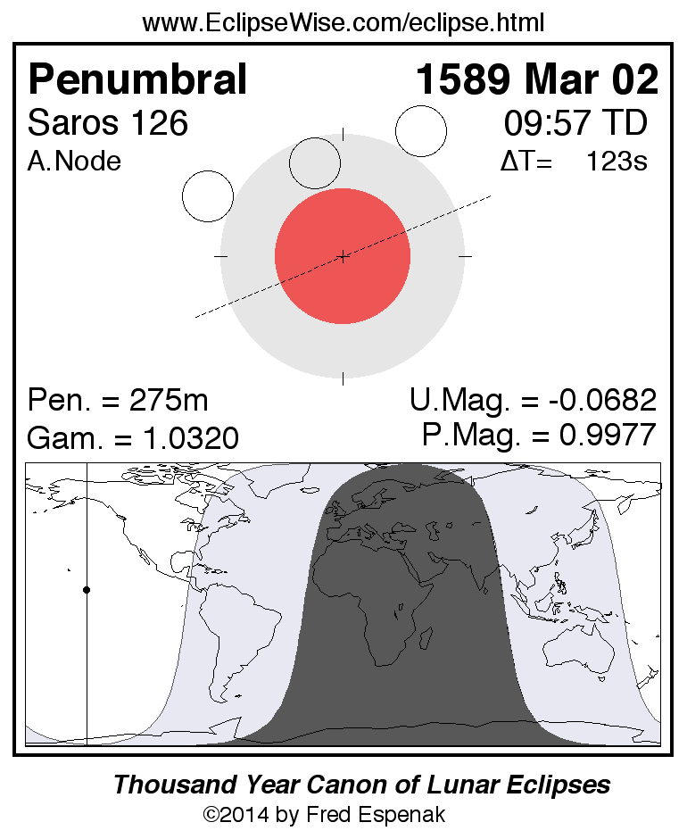 Penumbral Lunar Eclipse of 1589 Mar 02