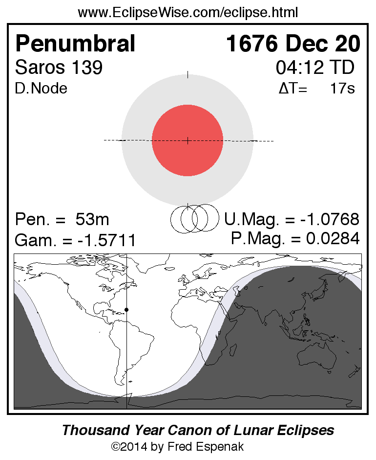 Penumbral Lunar Eclipse of 1676 Dec 20
