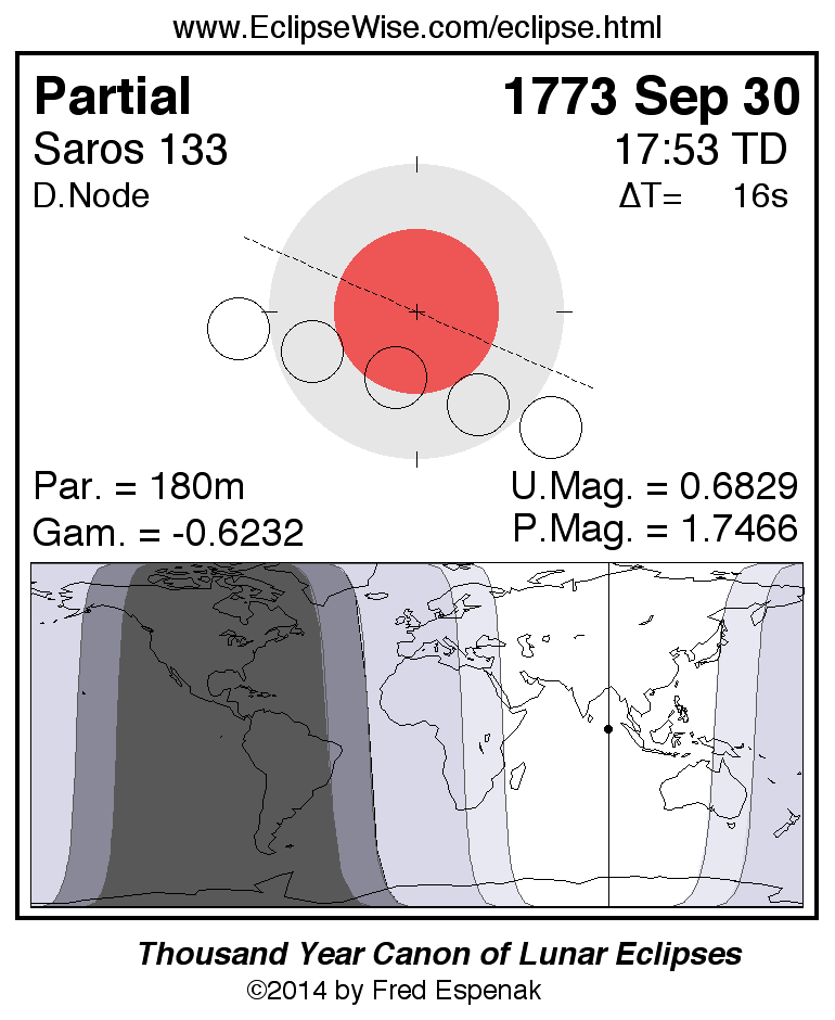 The partial lunar eclipse of 1773 Sep 30 is preceded two weeks earlier by a total solar eclipse on 1773 Sep 16.