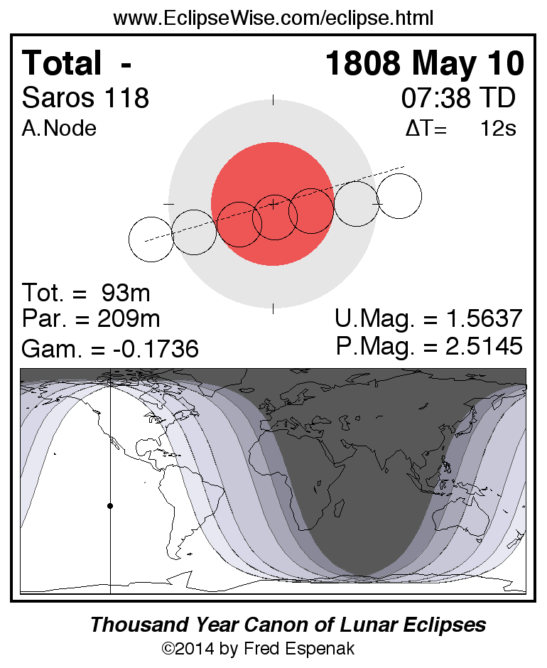 The total lunar eclipse of 1808 May 10 is followed two weeks later by a partial solar eclipse on 1808 May 25.