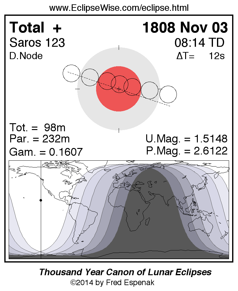 The total lunar eclipse of 1808 Nov 03 is preceded two weeks earlier by a partial solar eclipse on 1808 Oct 19,