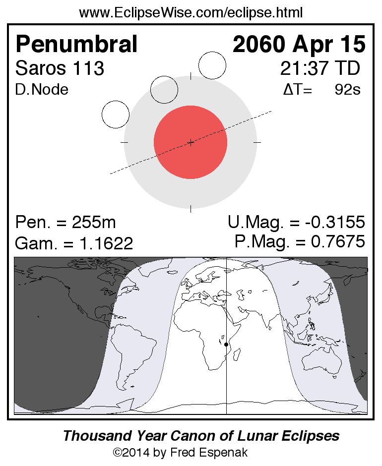 The penumbral lunar eclipse of 2060 Apr 15 is followed two weeks later by a total solar eclipse on 2060 Apr 30.