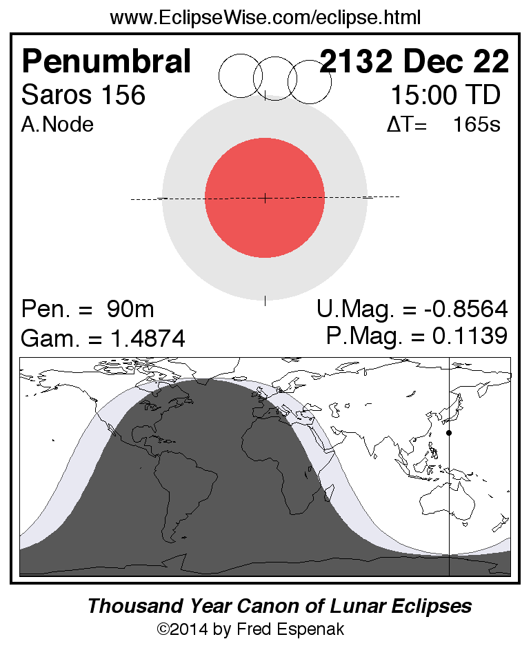 Penumbral Lunar Eclipse of 2132 Dec 22
