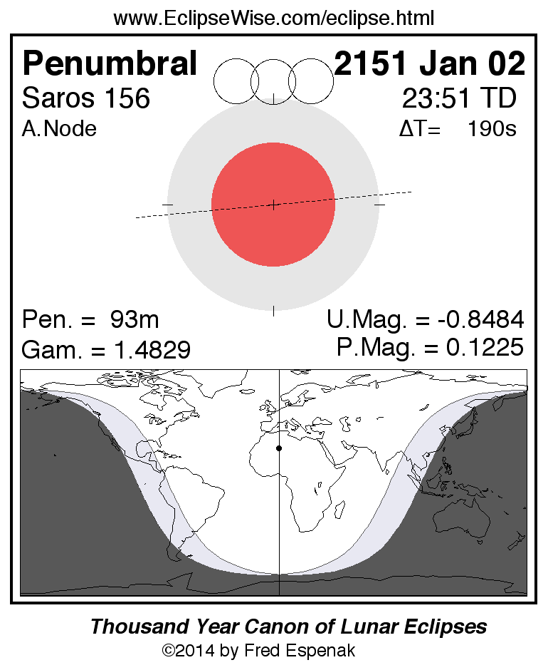 Penumbral Lunar Eclipse of 2151 Jan 02