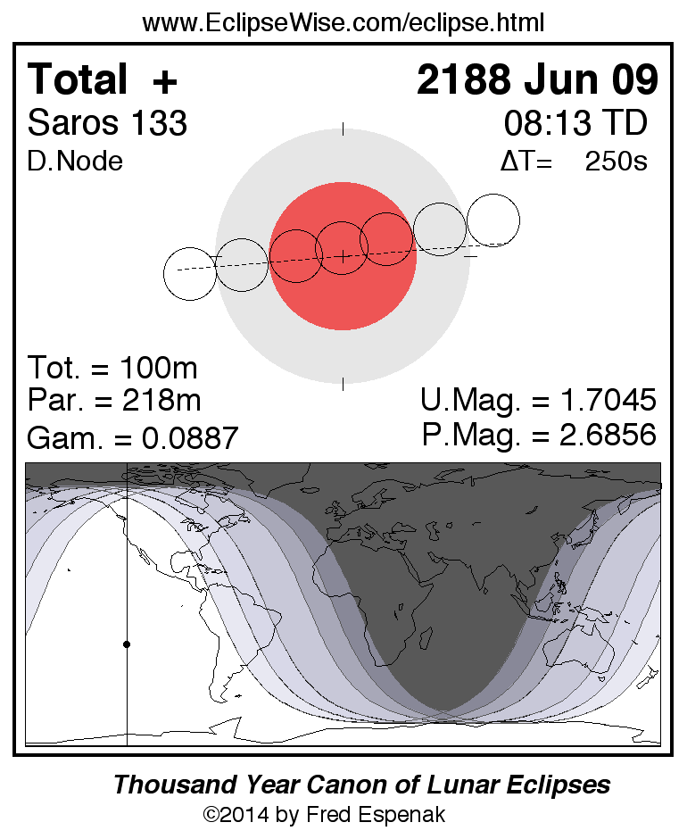 The total lunar eclipse of 2188 Jun 09 is preceded two weeks earlier by a partial solar eclipse on 2188 May 26,