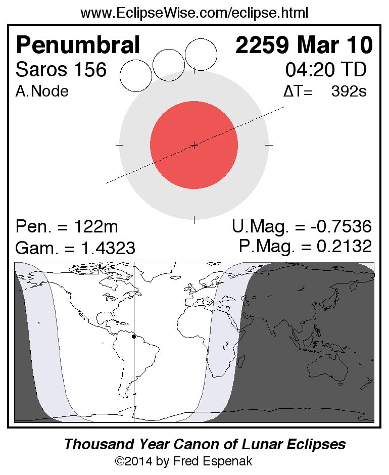 Penumbral Lunar Eclipse of 2259 Mar 10