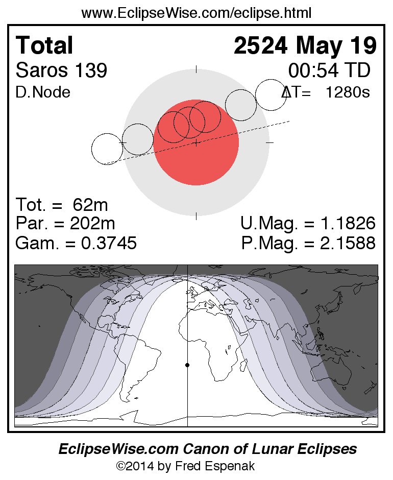 The instant of greatest eclipse takes place on 2524 May 19 at 00:54:01 TD (00:32:41 UT1).