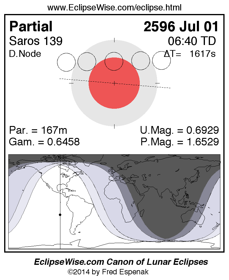 The instant of greatest eclipse takes place on 2596 Jul 01 at 06:40:07 TD (06:13:09 UT1).