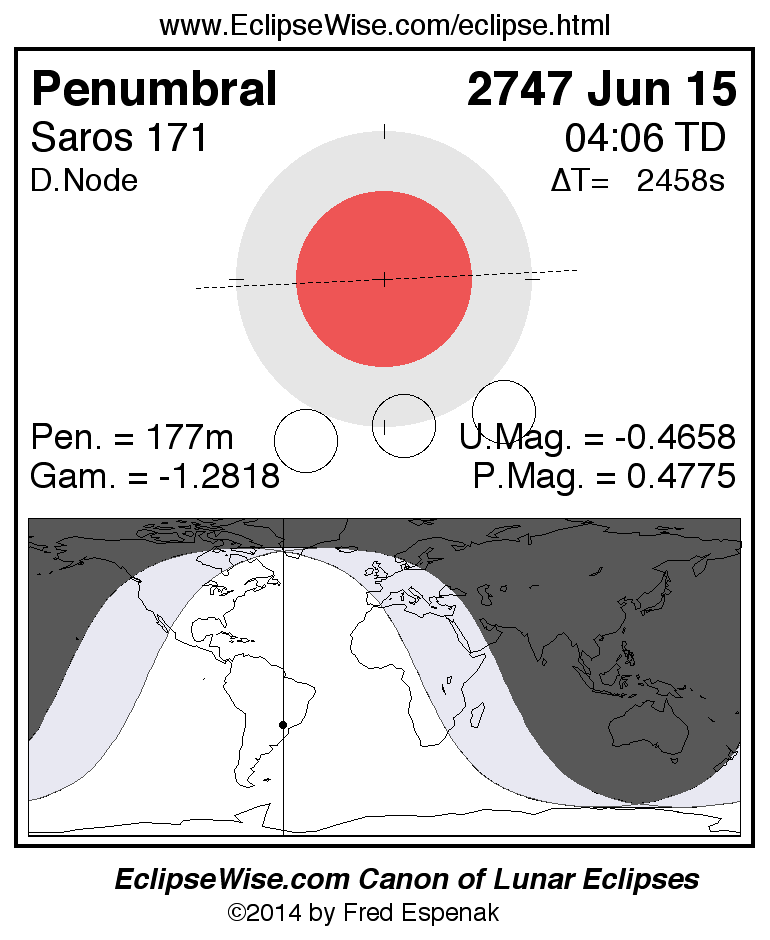 Another lunar eclipse occurs one synodic month before the 2747 Jun 15 eclipse. It is the penumbral lunar eclipse of 2747 May 16.
