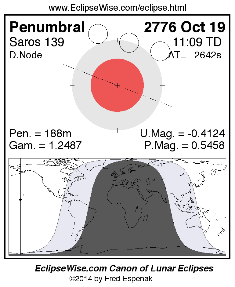 Another lunar eclipse occurs one synodic month after the 2776 Oct 19 eclipse. It is the penumbral lunar eclipse of 2776 Nov 17.