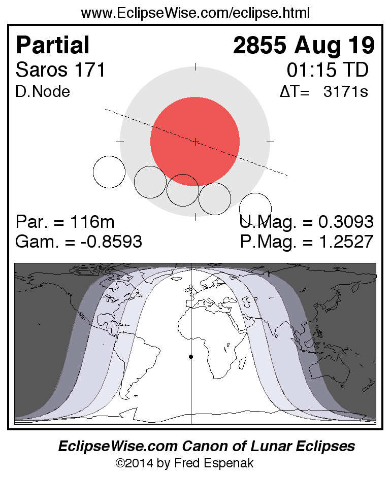 The instant of greatest eclipse takes place on 2855 Aug 19 at 01:14:43 TD (00:21:52 UT1).