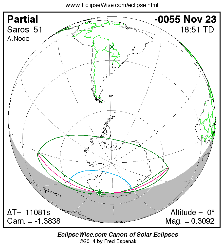 The instant of greatest eclipse takes place on -0055 Nov 23 at 18:51:26 TD (15:46:47 UT1).