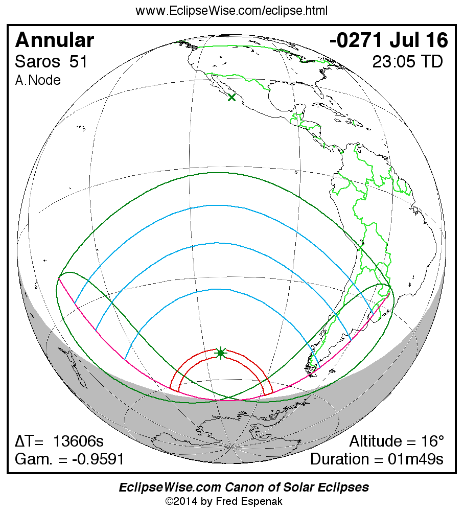 The instant of greatest eclipse takes place on -0271 Jul 16 at 23:05:14 TD (19:18:29 UT1).