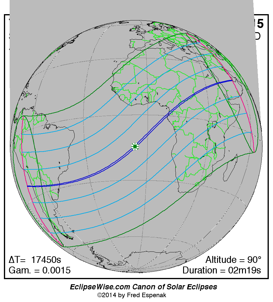 All eclipse calculations are by Fred Espenak, and he assumes full responsibility for their accuracy.