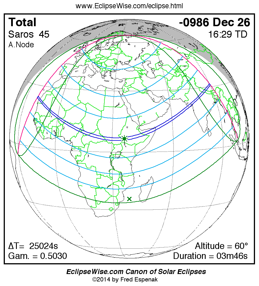 Total Solar Eclipse of -0986 Dec 26 (0987 Dec 26 BCE)