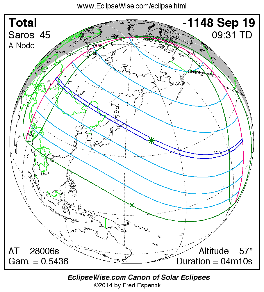 - Circumstances Table: Total Solar Eclipse of -1148 Sep 19 - eclipse times for hundreds of cities