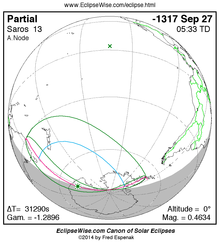 The instant of greatest eclipse takes place on -1317 Sep 28 at 05:33:01 TD (20:51:35 UT1).