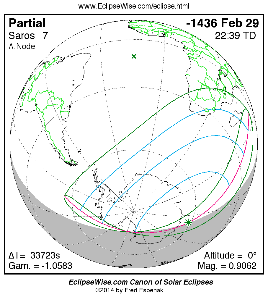 The instant of greatest eclipse takes place on -1436 Feb 29 at 22:39:25 TD (13:17:25 UT1).