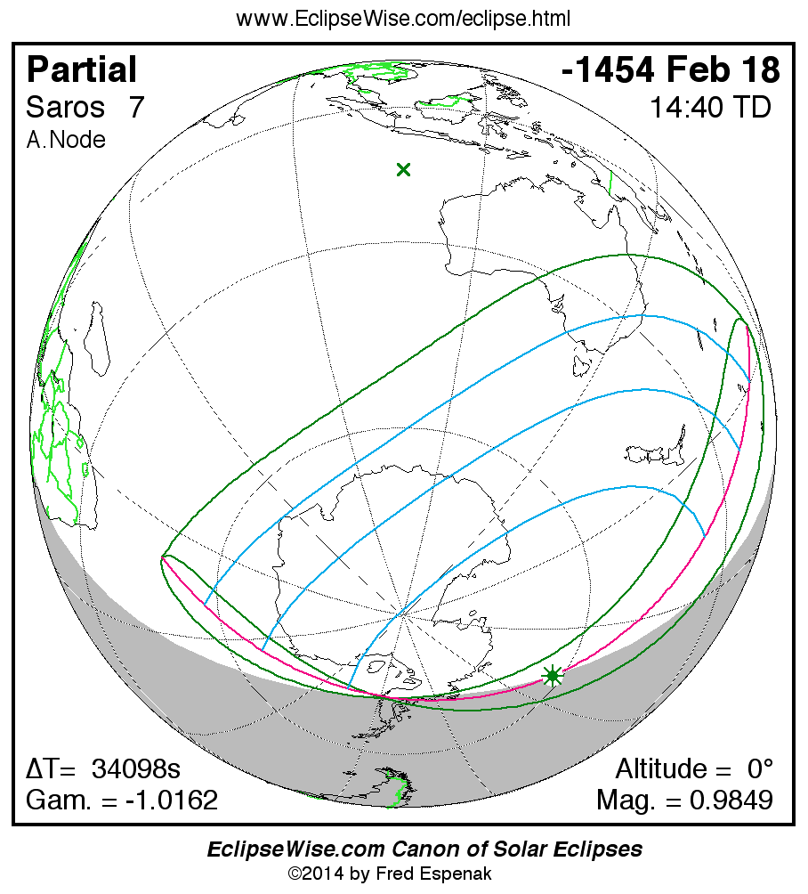 The instant of greatest eclipse takes place on -1454 Feb 18 at 14:39:52 TD (05:11:38 UT1).